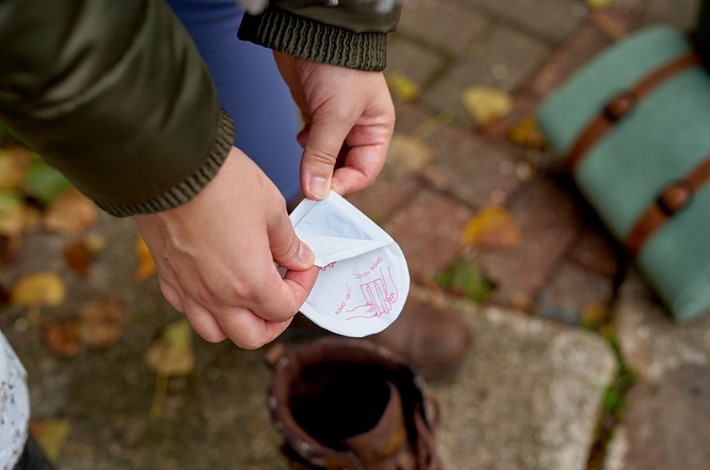 - Разместите грелку в носке или стельке обуви, предварительно убедившись, что она не мешает движению и равномерно прилегает к стопе.